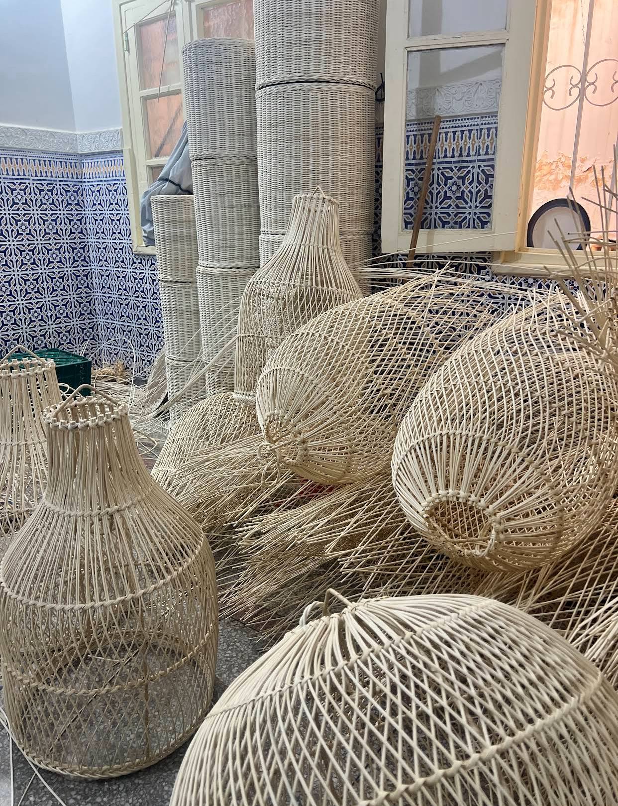 From the heart of the historic city of Fes, the cradle of authentic handicrafts, our creations are born, telling a story of harmony between man and nature. We are an artisanal cooperative that doesn’t just produce; we celebrate the secrets of the earth, transforming raw botanical treasures into exquisite pieces brimming with warmth and elegance. In every woven chandelier, every decorated basket, and every durable chair, you will find a piece of the soul of Morocco, blended with the resilience of Rattan, the flexibility of Raffia, the authenticity of Doum and Palm fibers, and the rustic warmth of Esparto Grass (Halfah).